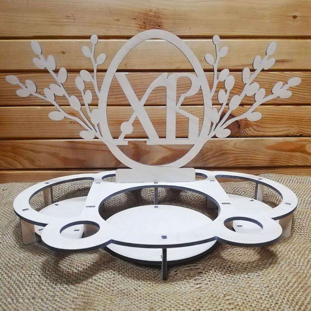Пасхальная подставка с декором из березовой фанеры – это практичное и стильное решение для сервировки праздничного стола. Она имеет отделения для конфет, яиц или булочек по бокам и углубление под кулич в центре, что позволяет компактно и красиво разместить все традиционные пасхальные угощения. Сзади подставку украшает резное пасхальное яйцо и ветки вербы, которые придают ей особый шарм и создают праздничную атмосферу. Изготовленная из экологичной березовой фанеры, подставка обладает прочностью и долговечностью. Натуральный цвет и текстура дерева гармонично сочетаются с пасхальным декором и создают ощущение тепла и уюта. Пасхальная подставка с декором – это не только функциональный элемент сервировки, но и стильный аксессуар, который подчеркнет праздничную атмосферу и станет украшением вашего стола. Она будет радовать глаз своим изящным дизайном и напоминать о светлом празднике Пасхи. Изделие выполнено только из экологичных материалов. Размер (Ш * Г * В): 24 * 10 * 16 см