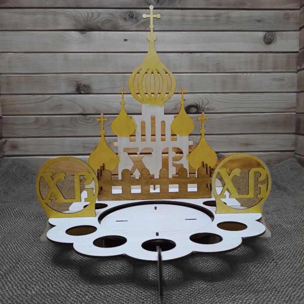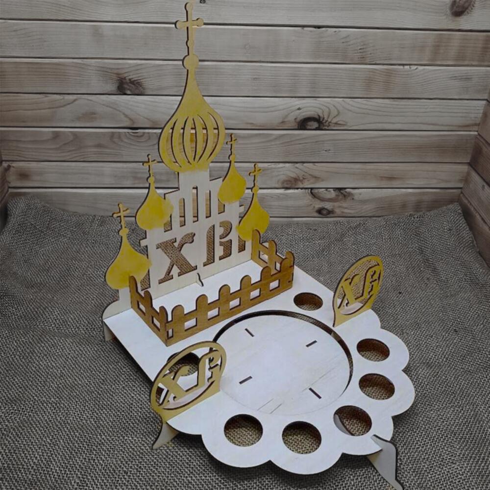 Декоративная пасхальная подставка Храм из березовой фанеры – это оригинальный и символичный элемент праздничного стола. Выполненная в форме православного храма, она создает особую атмосферу и напоминает о духовном значении праздника Пасхи. Подставка имеет ячейки для пасхальных яиц, кулича и отсек для булочек или конфет. Такая конструкция позволяет красиво и компактно разместить все традиционные пасхальные угощения на столе. Изготовленная из экологичной березовой фанеры, подставка обладает прочностью и долговечностью. Натуральный цвет и текстура дерева придают ей теплоту и естественность, а форма храма – особый шарм и значимость. Декоративная пасхальная подставка Храм – это не просто элемент сервировки стола, а символ праздника и семейных традиций. Она станет прекрасным украшением пасхального стола и будет напоминать о светлом празднике Воскресения Христова. Изделие выполнено только из экологичных материалов, и окрашено натуральными пропитками. Размер (Ш * Г * В): 27 * 30 * 35 см