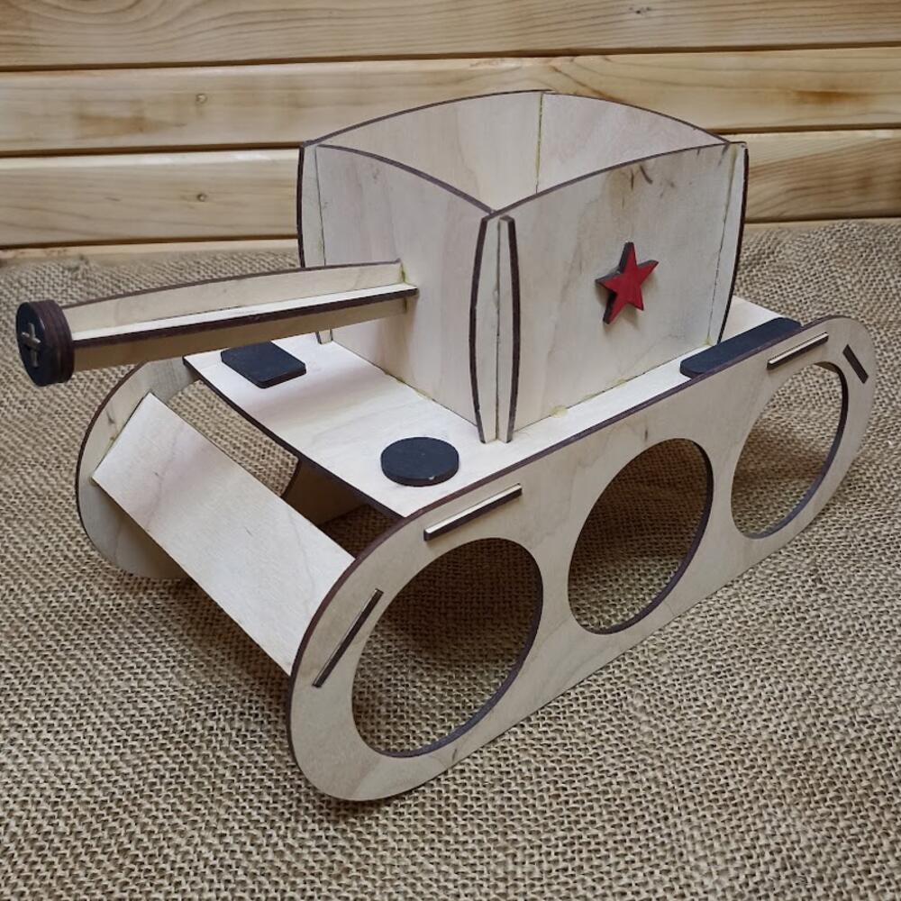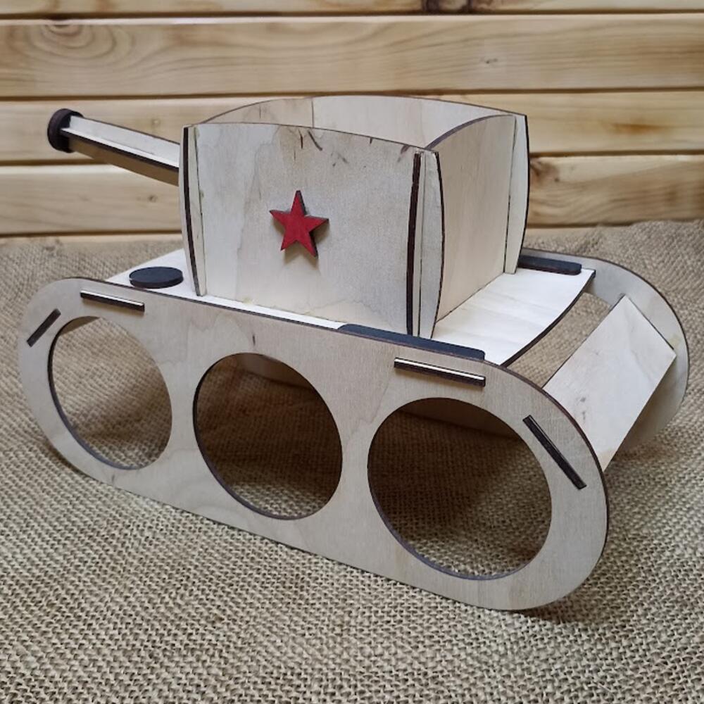 Пивной танк – это уникальное сочетание функциональности, созданное специально для любителей пива и оригинальных решений! Этот танк, выполненный из прочной берёзовой фанеры, станет оригинальным подарком и настоящим украшением вашего интерьера. В данном изделии предусмотрены отверстия для размещения трёх банок пива объёмом 0,45 л (диаметр 63 мм). А чтобы наслаждение любимым напитком было ещё приятнее, в верхней части танка расположен отдел для закусок. Заполните его хрустящими орешками, ароматными сухариками или пикантными чипсами – и ваш боекомплект для идеального вечера готов! Пивной танк станет отличным подарком для друга, коллеги или родственника, который ценит комфорт и стиль. Предназначен для стандартных банок объёмом 0,45 л (диаметр 63 мм). Изделие выполнено только из экологичных материалов. Размер (Ш * Г * В): 25 * 12 * 15 см Размер внутреннего объёма (Ш * Г * В): 8 * 8 * 7 см