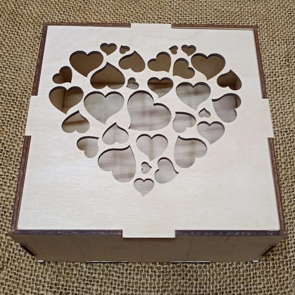 Коробочка с резной крышкой из березовой фанеры – это идеальная упаковка для подарков, которые вы преподносите с любовью. Вырезы в форме сердца на крышке придают ей особый шарм и романтичность, делая ее подходящей для Дня святого Валентина, годовщины свадьбы или просто для выражения своих чувств. Изготовленная из экологичной березовой фанеры, коробочка обладает прочностью и долговечностью. Натуральный цвет и текстура дерева придают ей теплоту и естественность, а компактный размер позволяет разместить внутри небольшие подарки, такие как украшения, конфеты, косметика или другие приятные мелочи. Это не просто упаковка, а часть подарка, которая сохранит свою ценность и после праздника. Ее можно использовать для хранения украшений, памятных вещей или других мелочей, напоминая о приятных моментах и теплых чувствах. Изделие выполнено только из экологичных материалов. Размер (Ш * Г * В): 13 * 13 * 6 см