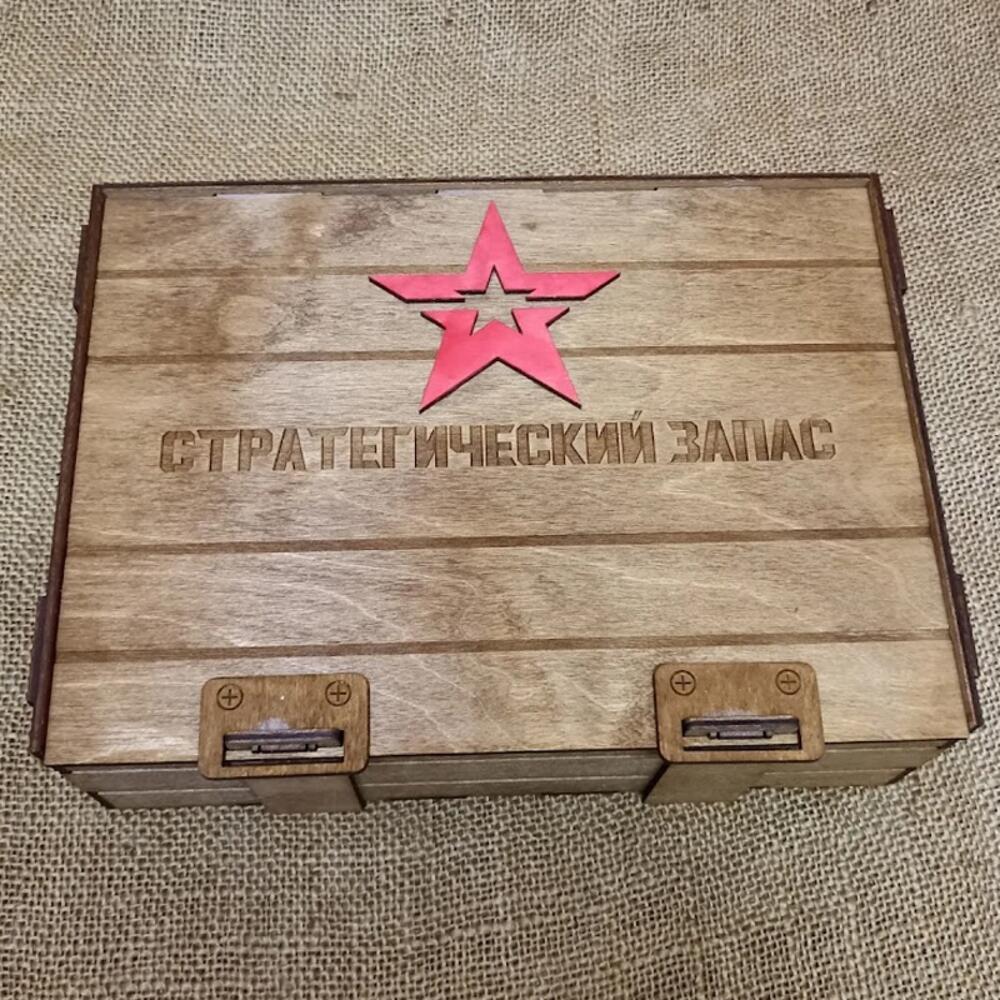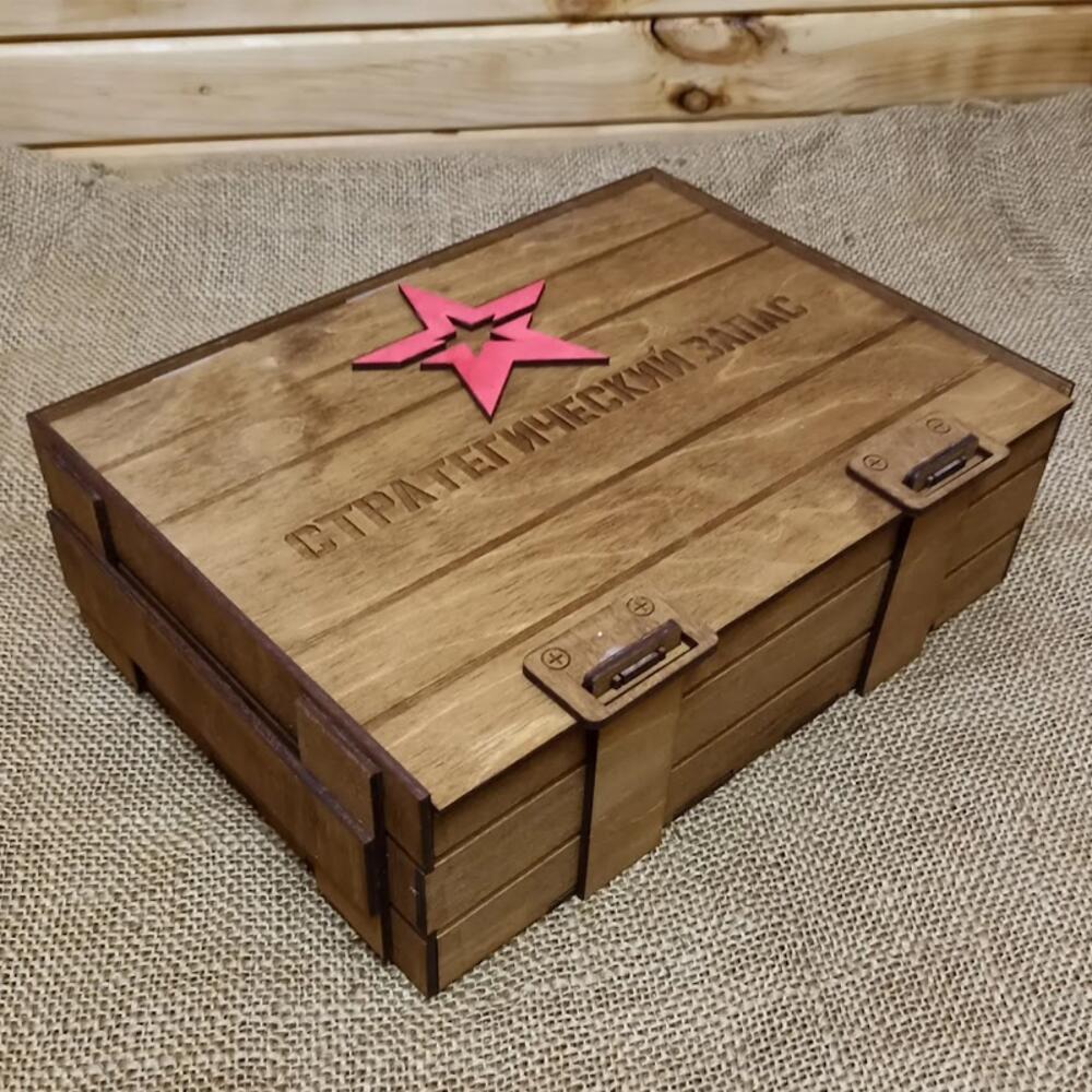 Этот подарочный ящик, стилизованный под военный, станет отличным выбором для оригинального поздравления мужчины с любым праздником. Изготовленный из прочной берёзовой фанеры, он не только привлекает внимание своим брутальным дизайном, но и гарантирует сохранность подарка внутри. Крышка ящика надёжно фиксируется на защёлках, создавая интригу и предвкушение перед открытием. Лазерная гравировка Стратегический запас и красная звезда на крышке подчёркивают тематику и добавляют шарма. Внутри ящика достаточно места для размещения различных подарков: от бутылки хорошего алкоголя и набора инструментов до предметов одежды и аксессуаров. Вы можете дополнить содержимое тематическими элементами, например, фляжкой, компасом или армейским сухим пайком, чтобы усилить впечатление. Подарочный ящик Стратегический запас - это не просто упаковка, а часть подарка, которая запомнится надолго и может использоваться в дальнейшем для хранения различных вещей. Изделие выполнено только из экологичных материалов, и окрашено натуральными пропитками. Внешний размер (Ш * Г * В): 25 * 18 * 8 см Артикул: WW04034