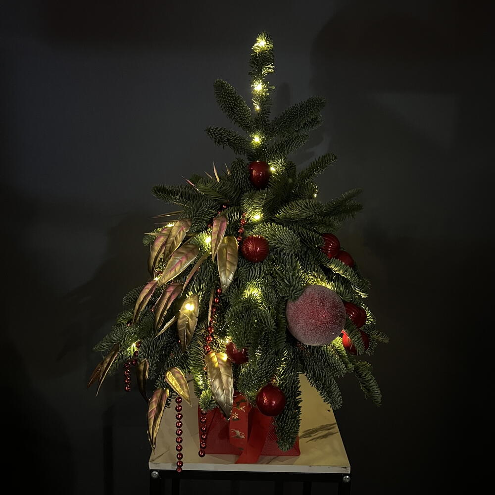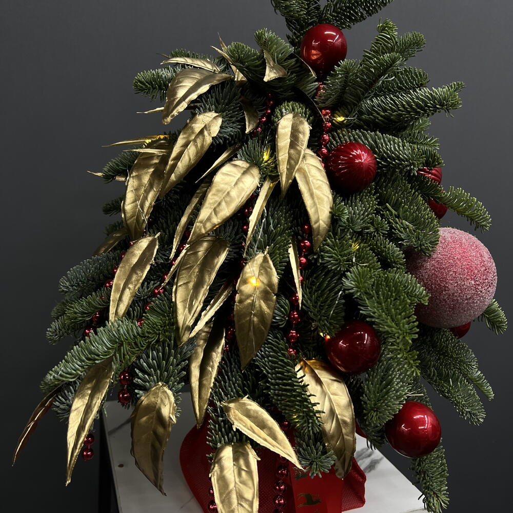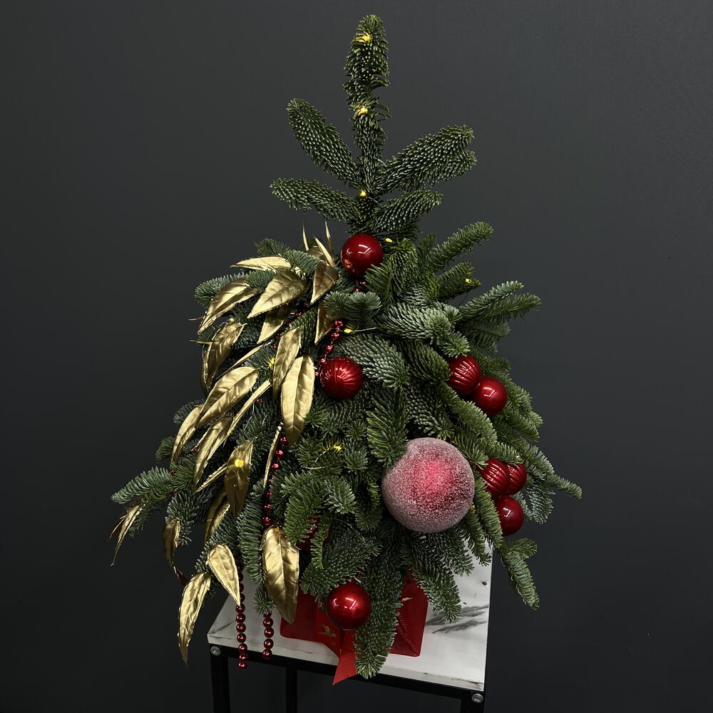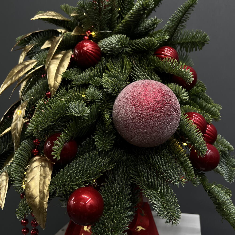 Премиальная ароматная ель с изысканными новогодними игрушками и декором. Натуральная хвоя наполняет пространство свежестью зимнего леса, а элегантные детали подчёркивают статус и вкус. Готовое решение для роскошной праздничной атмосферы.