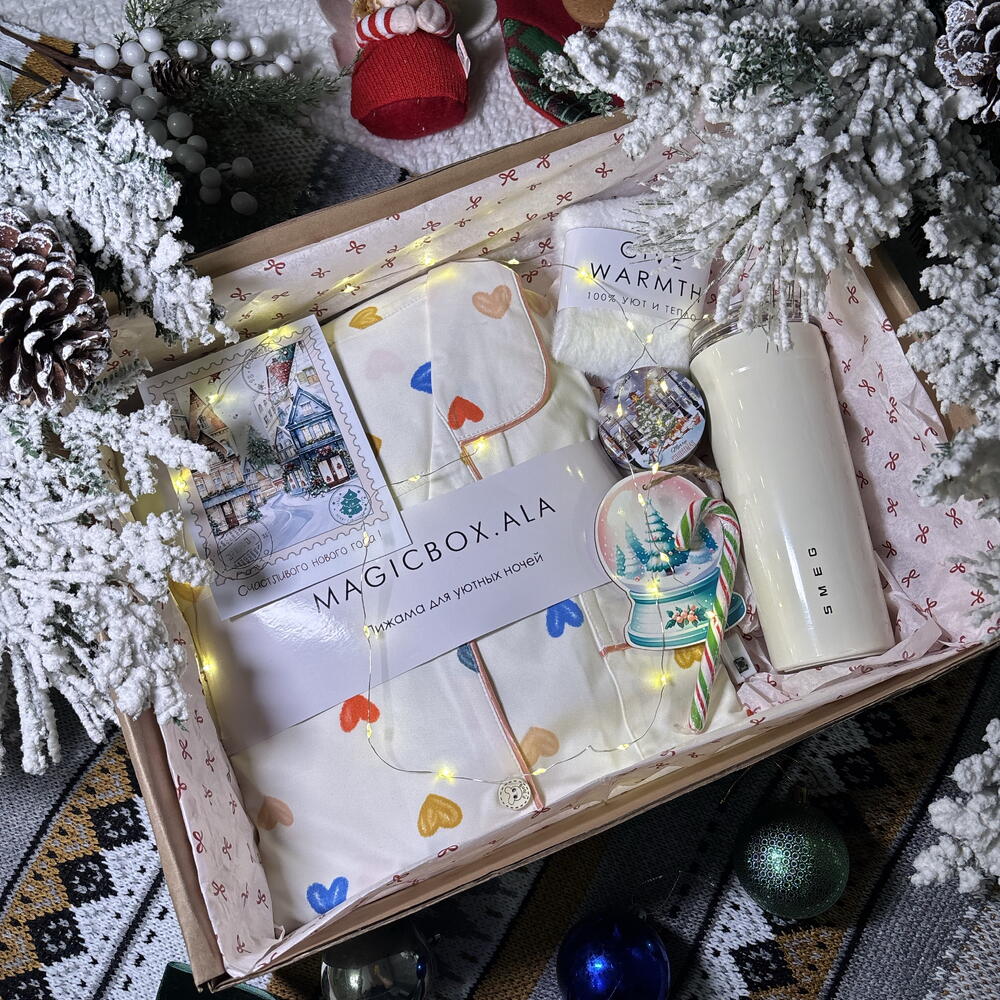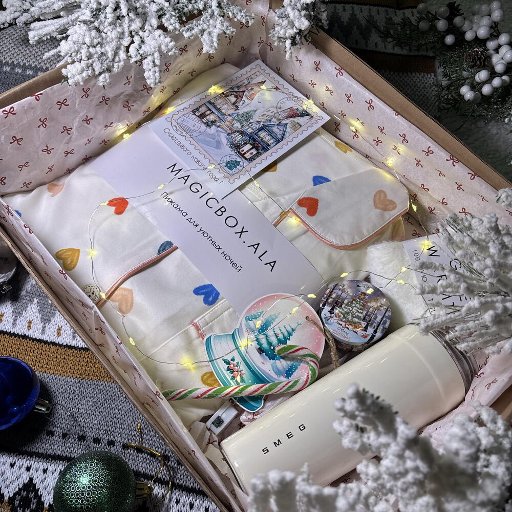 Погрузитесь в атмосферу зимнего уюта с нашим праздничным боксом — идеальным подарком для тех, кто любит комфорт, нежные эмоции и маленькие сезонные радости. ✨ Внутри вы найдёте: 💖 Пижаму с сердцем — мягкая, тёплая и невероятно уютная. Она создаёт настроение домашнего праздника и станет любимым комплектом для зимних вечеров. ☕ Кружку в стиле SMEG — элегантная, стильная, с атмосферой ретро-дизайна. В ней любое утреннее какао или ароматный чай будут вкуснее и теплее. 🧦 Тёплые носочки — пушистые, мягкие, идеально согревающие. Они добавят ещё больше уюта и сделают любые моменты дома по-настоящему зимними. 🕯️ Ароматную свечу — нежный свет и приятный аромат создадут волшебную, расслабляющую атмосферу праздников. ❄️ Этот бокс — о внимании к деталям, нежности и заботе. Его хочется дарить тем, кого любишь… и, конечно, себе.
