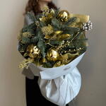 Стильная новогодняя композиция, где каждый элемент создан для красоты: насыщенный аромат нобилиса и деликатный блеск праздничного декора
