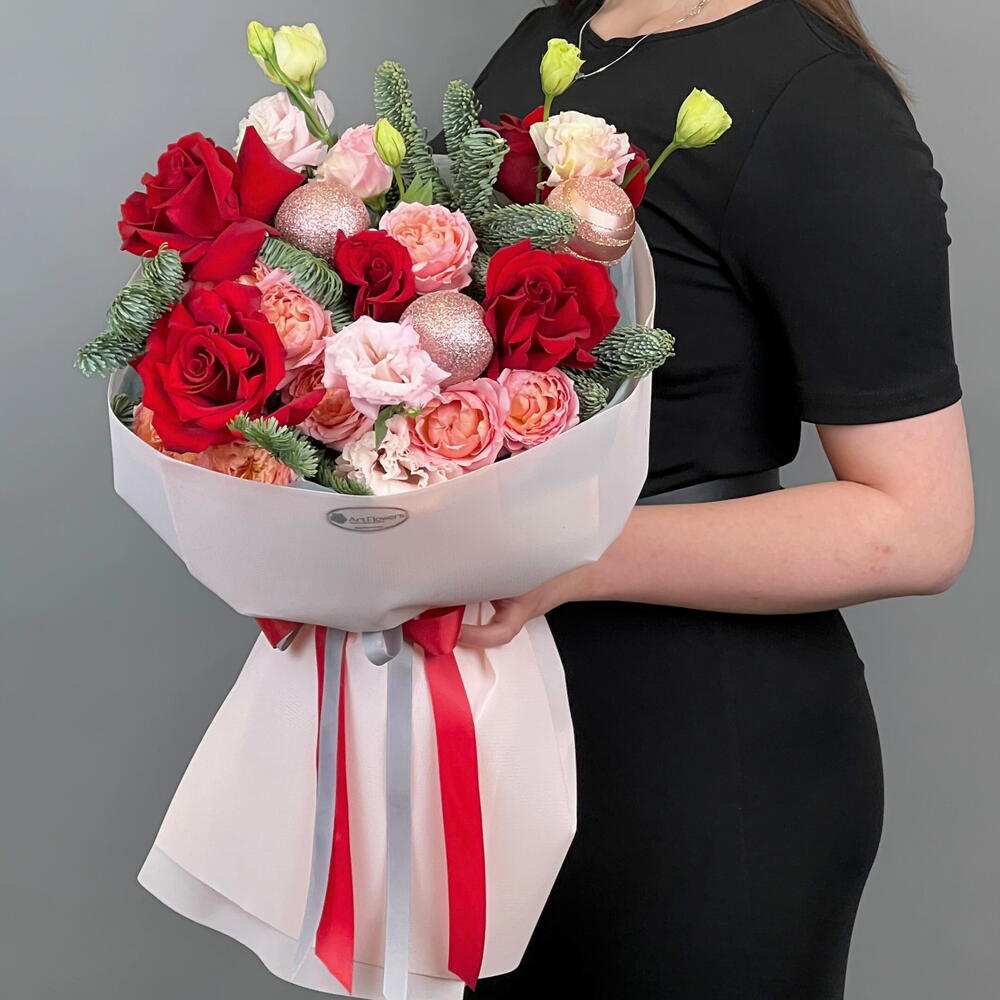 Этот букет — словно признание в чувствах, оформленное в роскошных красных и белых оттенках. Яркие акценты создают эффект глубины и страсти, а мягкие нежные цветы добавляют утончённости. Подарите эмоции, которые запомнятся.