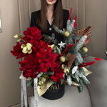 Роза - 7 шт. Коробка - 1 шт. Нобилис - 3 шт. Игрушки елочные - 5 шт.