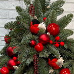 Яркая ароматная ёлочка украшенная снегирями ручной работы