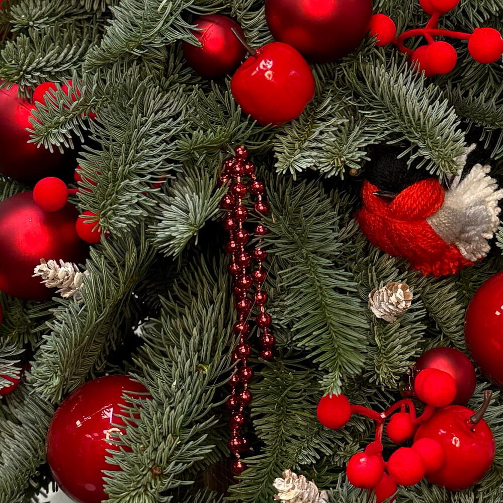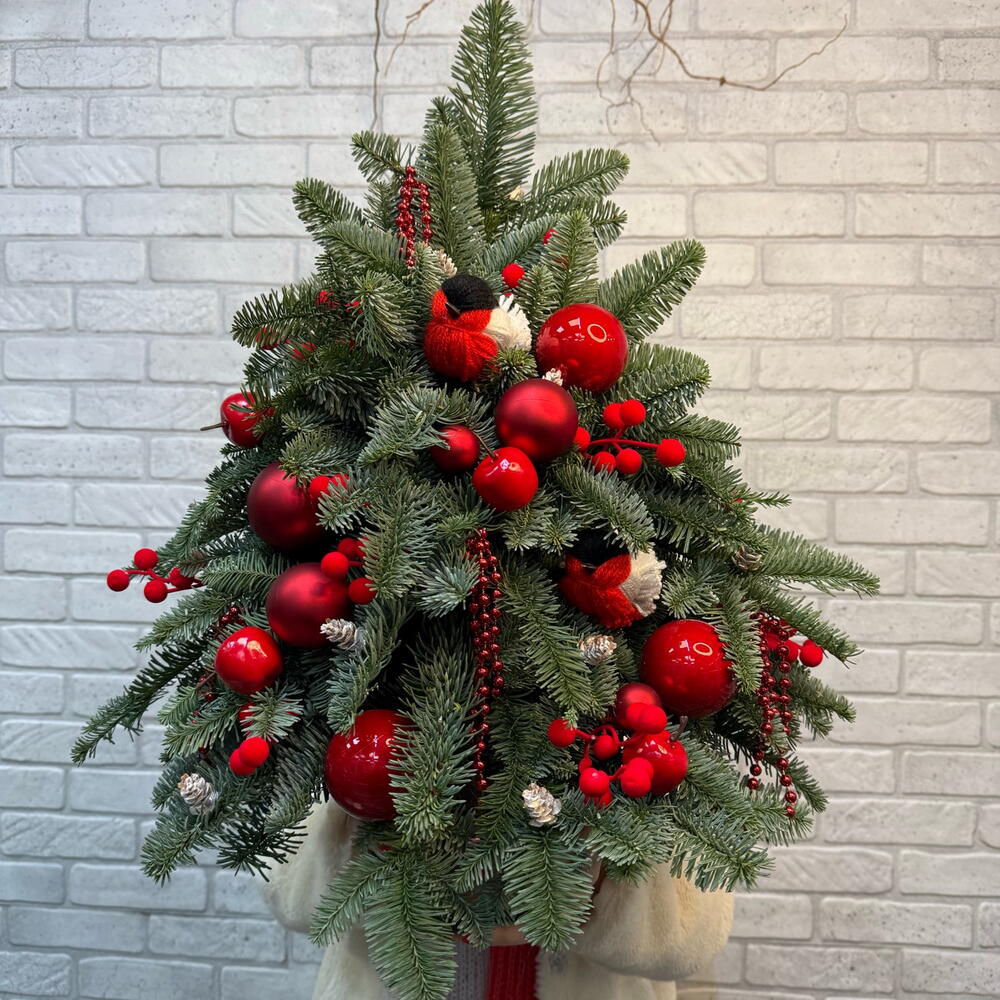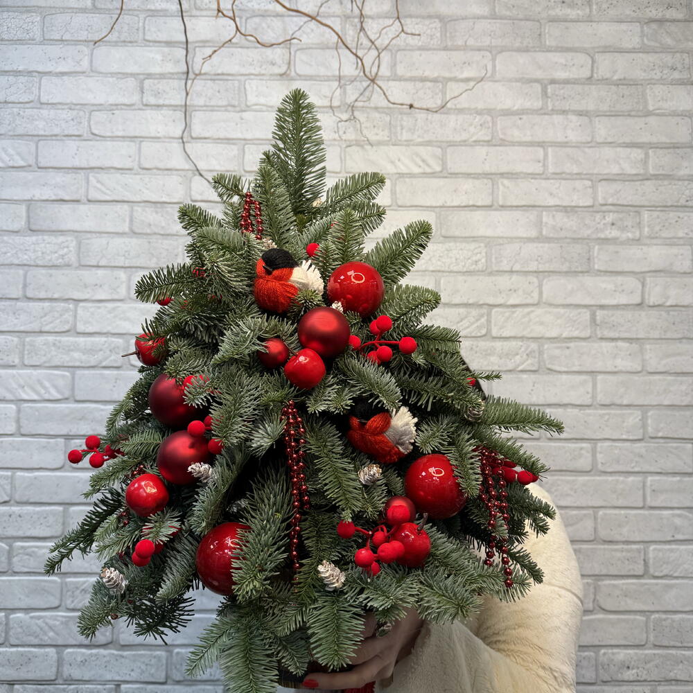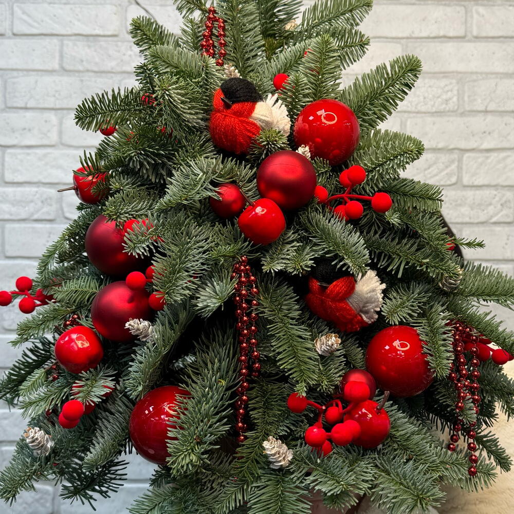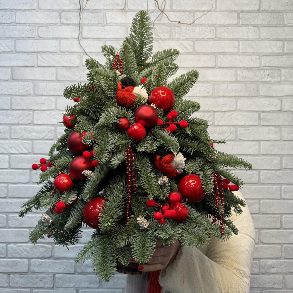 Яркая ароматная ёлочка украшенная снегирями ручной работы