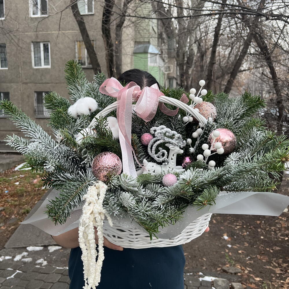 Новогодняя композиция из живой ели , простоит больше месяца , нужно поливать .
