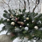 Композиция из живой ели , простоит больше месяца , нужно поливать .