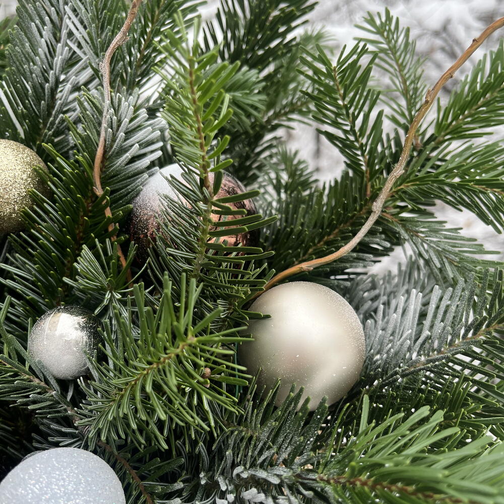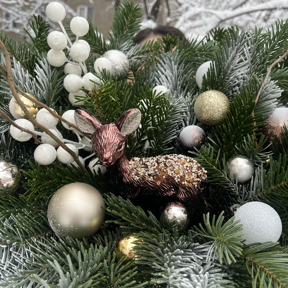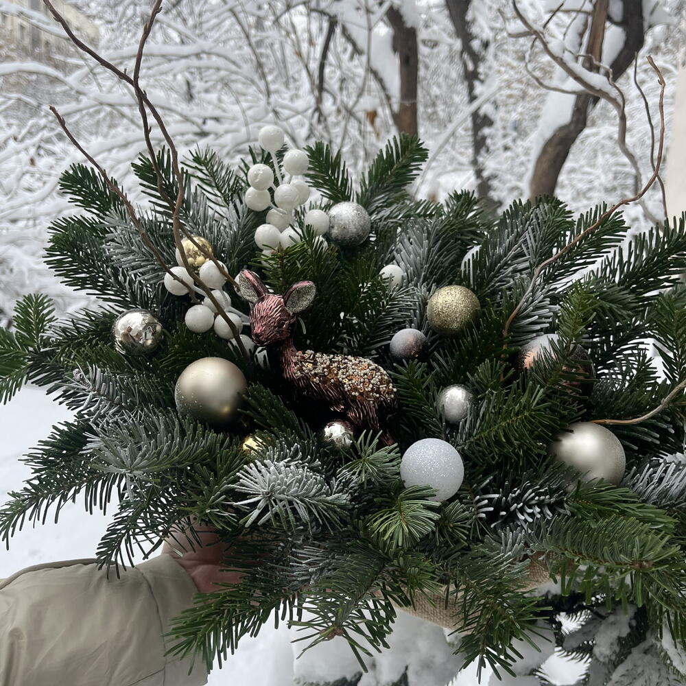 Нобилис - 3 шт. Игрушки елочные - 13 шт. ягоды - 1 шт. олень елочное украшение - 1 шт. корилиус - 2 шт.