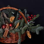 Корзина с апельсинами и корицей