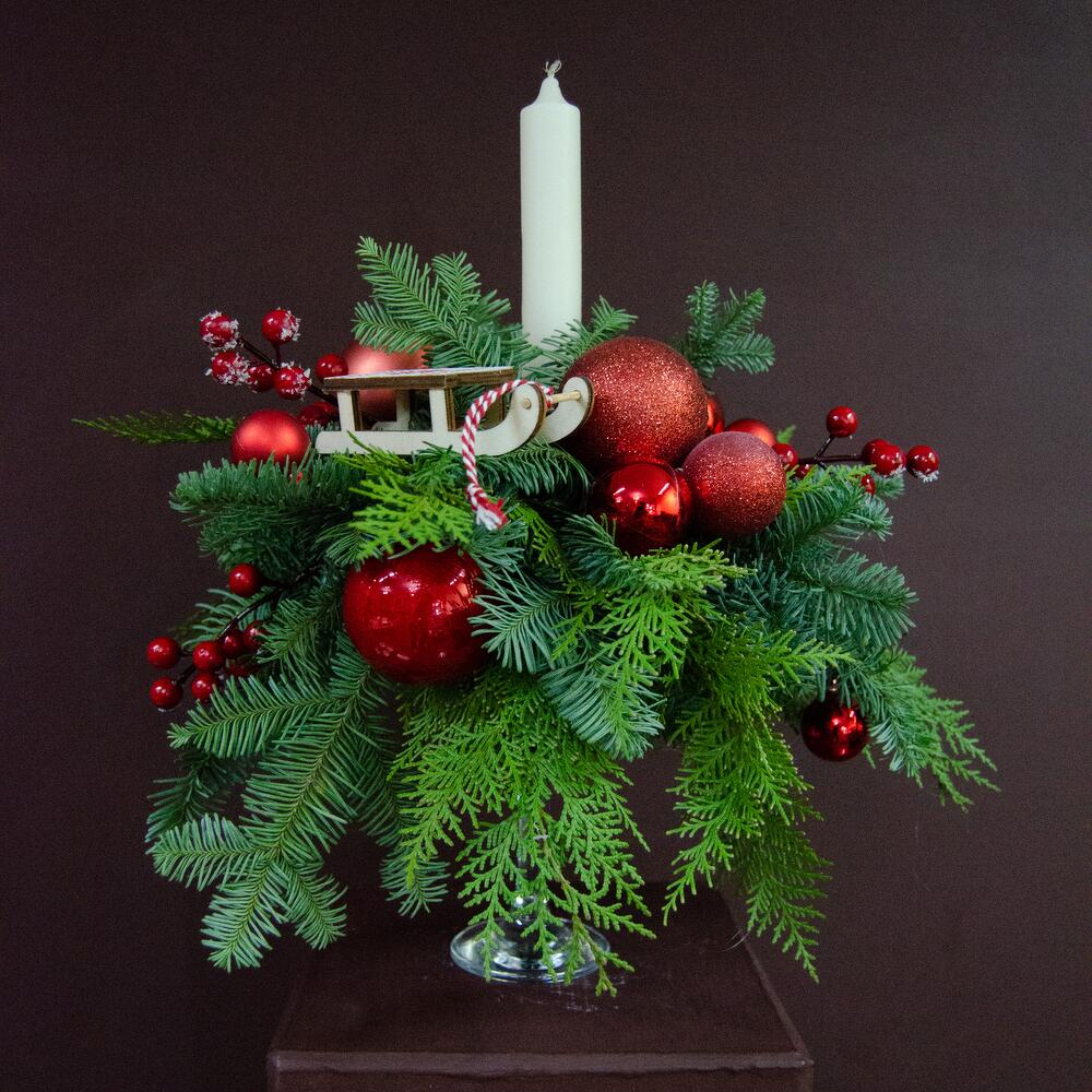 Ароматные хвойные композиции, собранные специально для вас мастерами-флористами. В зависимости от наличия игрушек, цвет и состав могут немного отличаться.