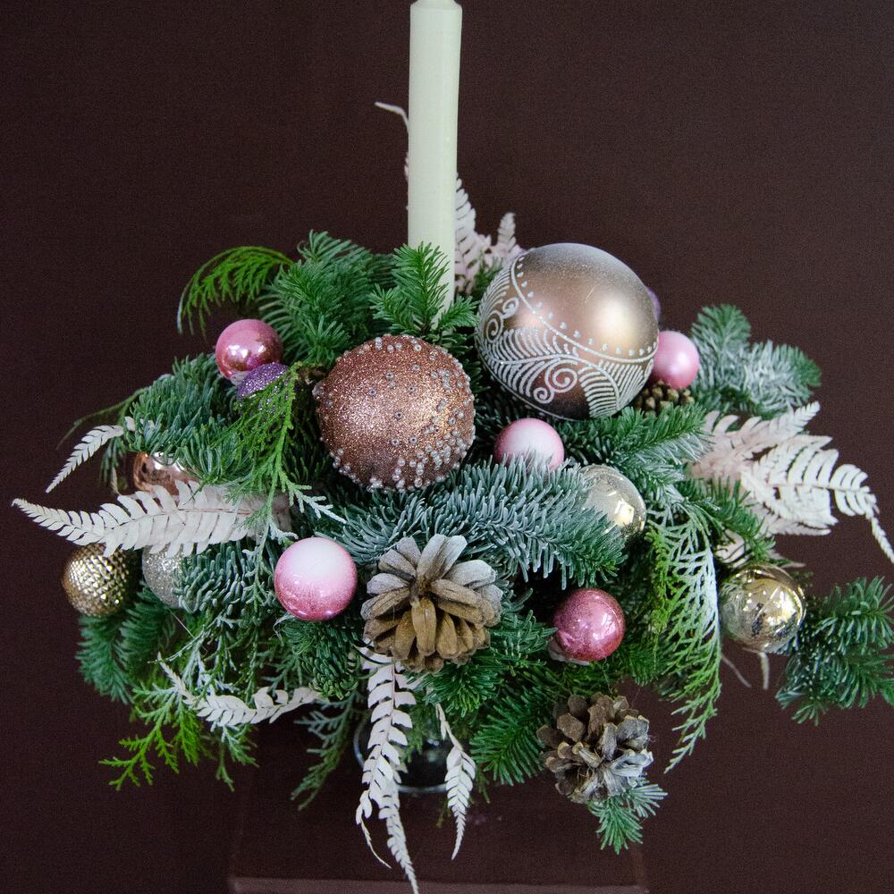 Ароматные хвойные композиции, собранные специально для вас мастерами-флористами. В зависимости от наличия игрушек, цвет и состав могут немного отличаться.