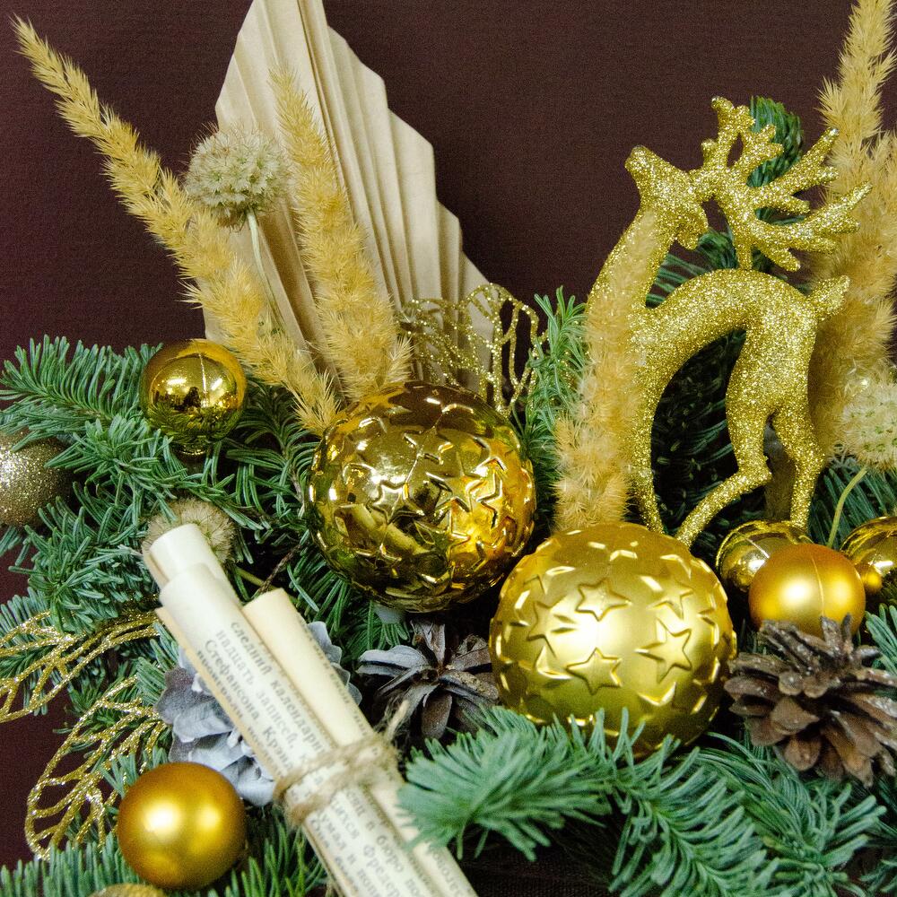 Ароматные хвойные композиции, собранные специально для вас мастерами-флористами. В зависимости от наличия игрушек, цвет и состав могут немного отличаться.