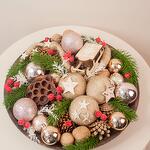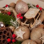 Шишки Ягоды засахаренные Ветки искусственные Тарелка Сани деревянные Елка искуственная Шарики пластиковые Коробка лотоса