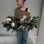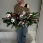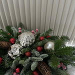 Илекс Красный - 9 шт. Игрушки новогодние - 18 шт. Хлопок натуральный - 3 шт. Елка натуральная - 12 шт. шишики натуральные - 2 шт.
