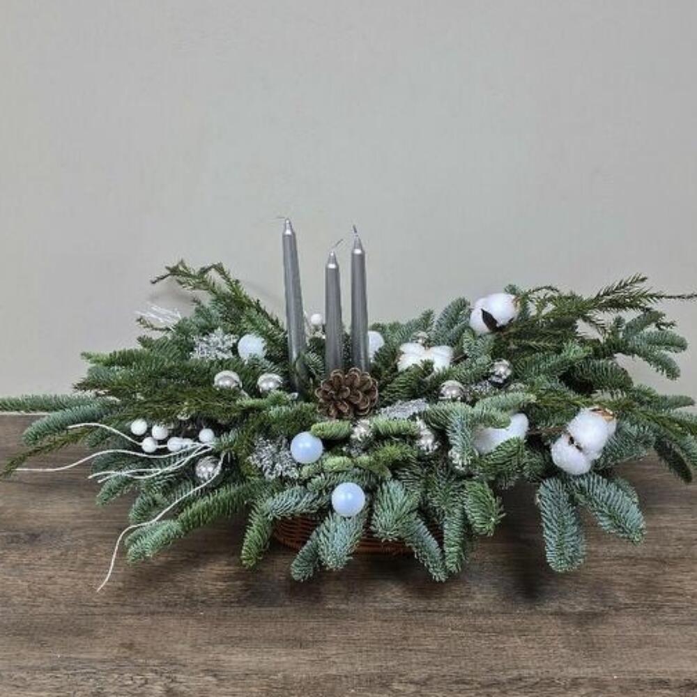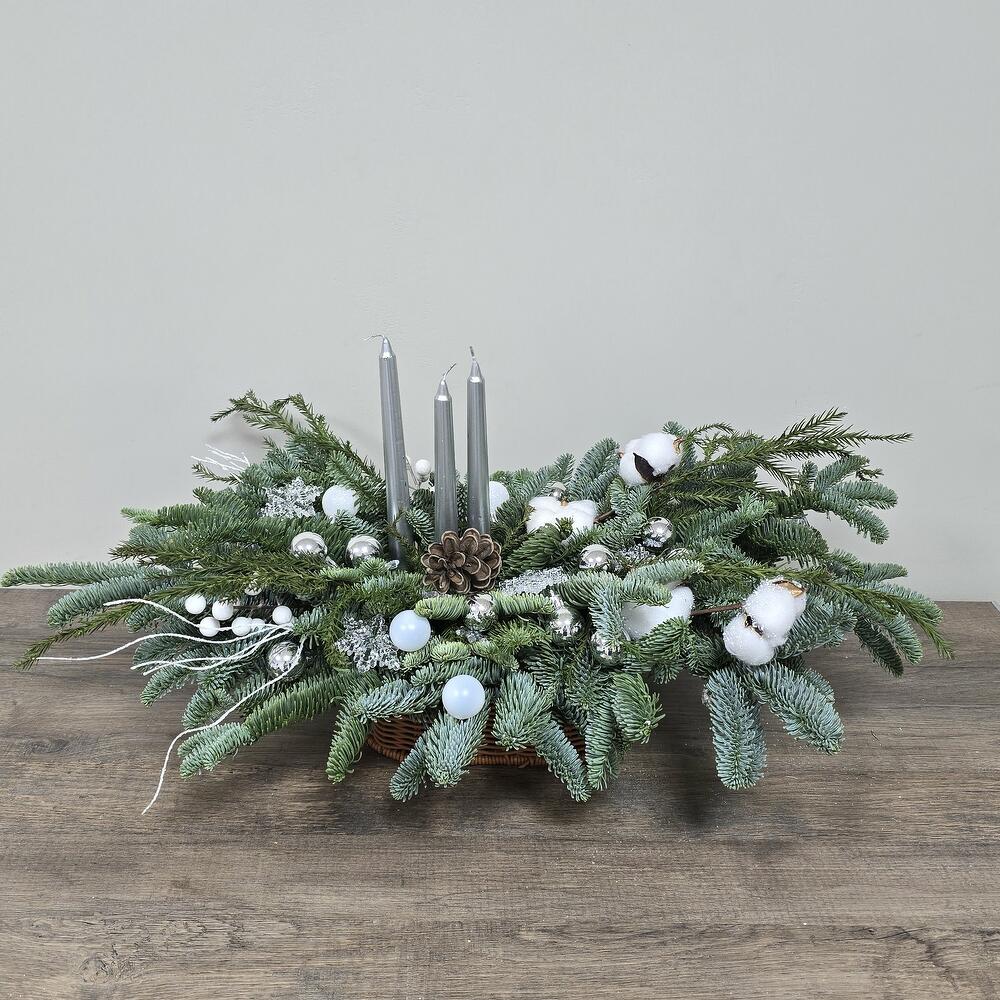 Нобилис Елочные игрушки Пинус Корзина Хлопок Свечи Ветка заснеженная Стеклярус