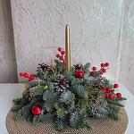 Шишки Новогодние игрушки Нобилис Ягодки красные Свеча золотая Ветка золотая Бантики парчовые
