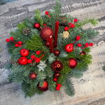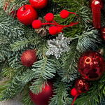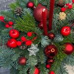 Свеча - 1 шт. Оазис - 1 шт. Нобилис - 3 шт. Елочные игрушки - 15 шт. Пихта живая - 3 шт. поддон пластиковый - 1 шт. Шишка Ели - 5 шт.