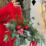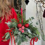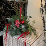 Свеча новогодняя - 1 шт. Оазис флористический - 1 шт. Хвоя живая - 5 шт. бантик лента - 2 шт.