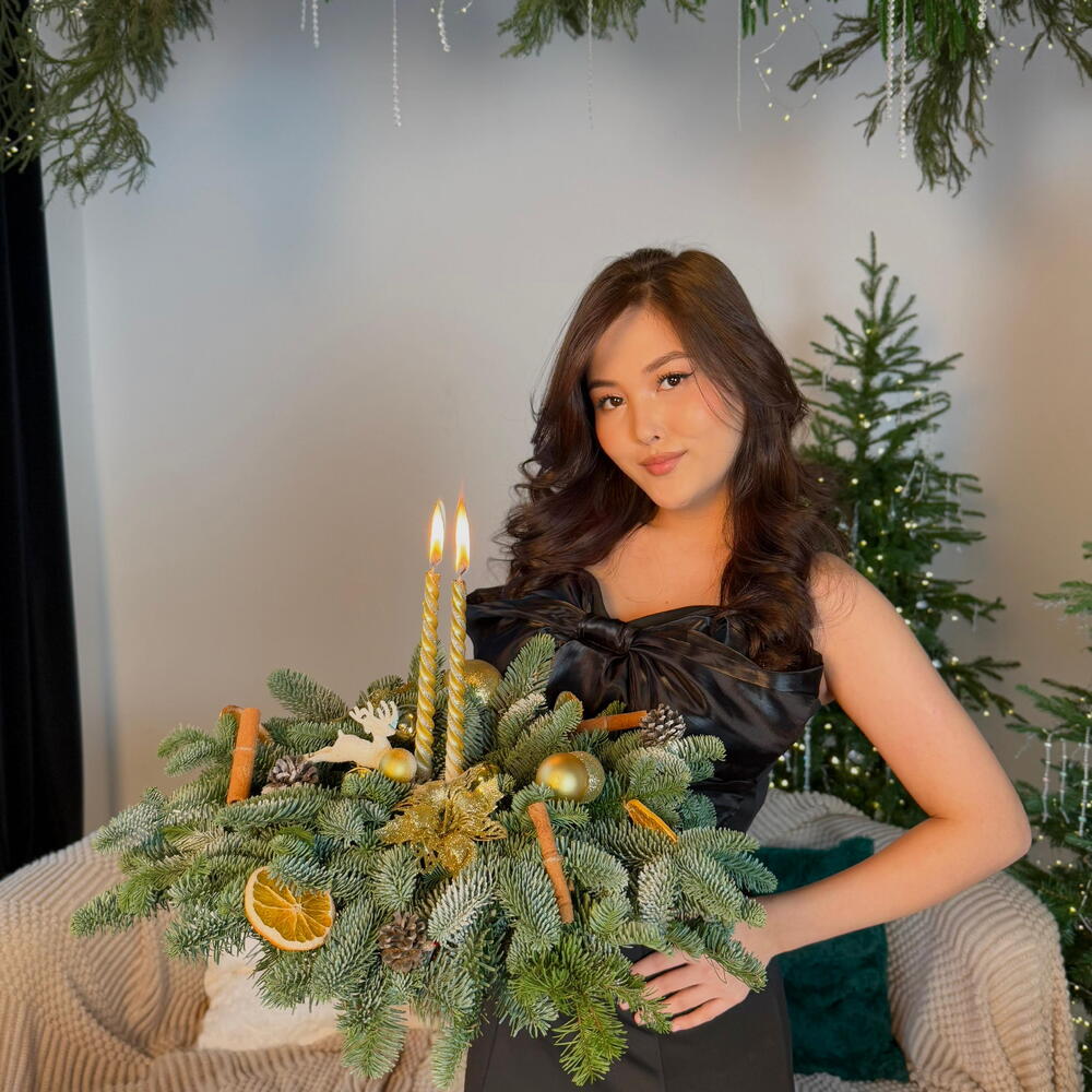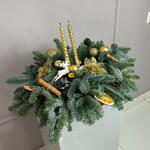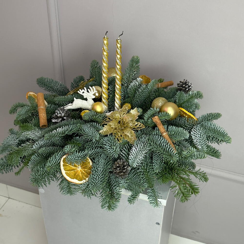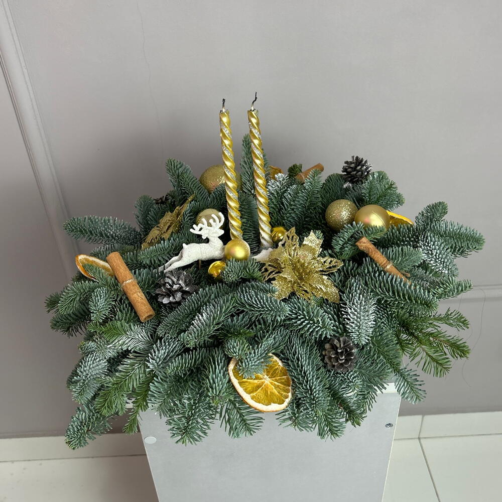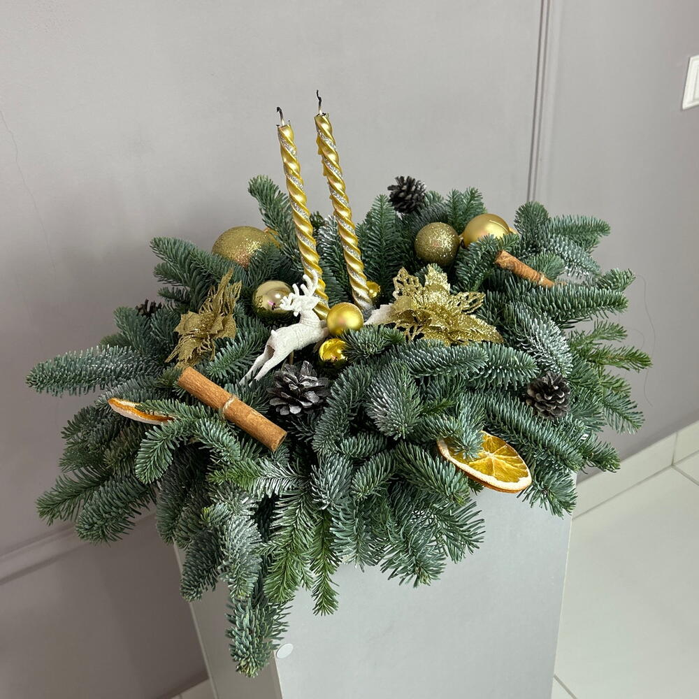 Корица - 3 шт. Нобилис - 3 шт. Свеча новогодняя - 2 шт. Игрушки елочные - 10 шт. апельсиновые дольки сушеные - 4 шт.