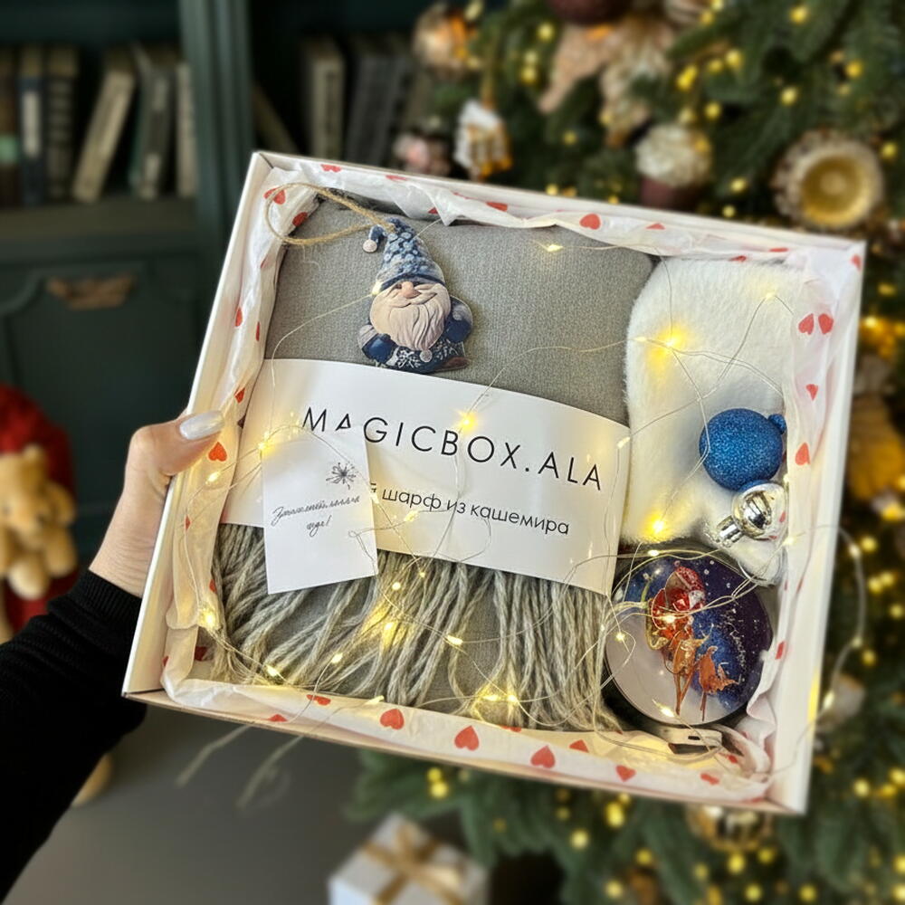 Открыточка с вашими пожеланиями - 1 шт. теплые носочки - 1 шт. теплый шарф - 1 шт. свеча новогодняя с крышкой - 1 шт.