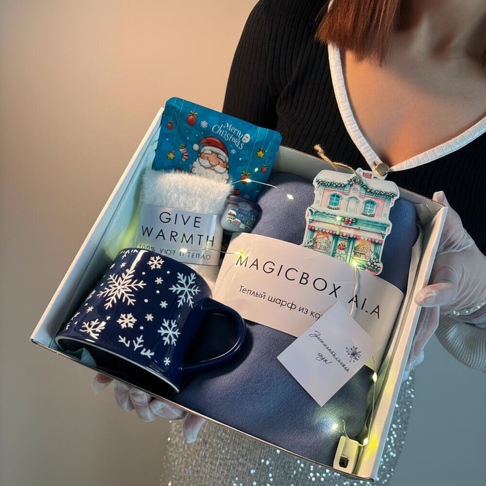 Этот подарочный набор станет настоящей зимней сказкой для его обладателя. Комплект включает в себя всё для уюта и тепла: изящный кашемировый шарф, подарит ощущение лёгкости и теплоты, а парочка мягких носочков станет незаменимой частой вечерних посиделок за любимым фильмом. Позаботиться о коже помогут маска для лица и бальзам для губ, подарившие насыщенное увлажнение и питание. А какую новогоднюю атмосферу создает эта волшебная кружка, ведь с ней любой напиток становится особенным! Этот набор оставит только самые теплые и искренние впечатления.