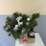 Елочная композиция из живой ели с невероятным ароматом . Простоит больше месяца , нужно поливать .
