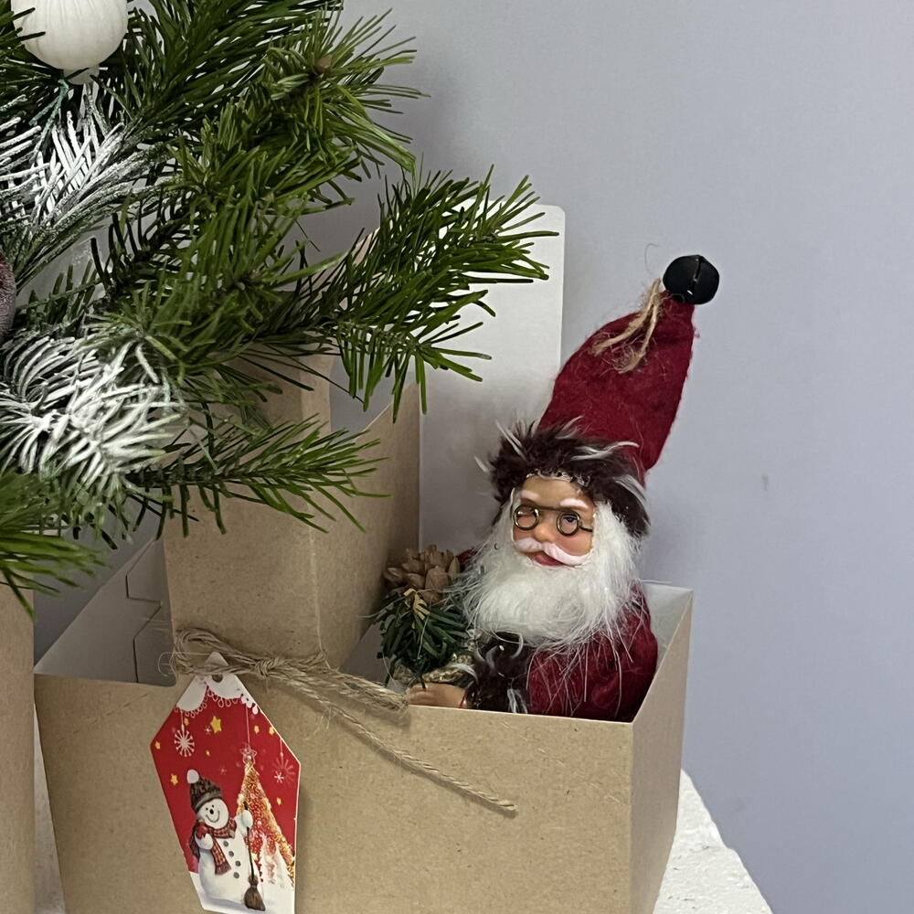 Елочные игрушки - 7 шт. Ветки ели - 1 шт. Дед мороз игрушка - 1 шт.