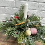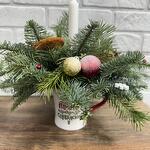 Свеча - 1 шт. Нобилис - 2 шт. Игрушки елочные - 7 шт. Оазис флористический - 1 шт. Пихта живая - 2 шт. апельсиновые дольки - 4 шт. кружка керамика - 1 шт.