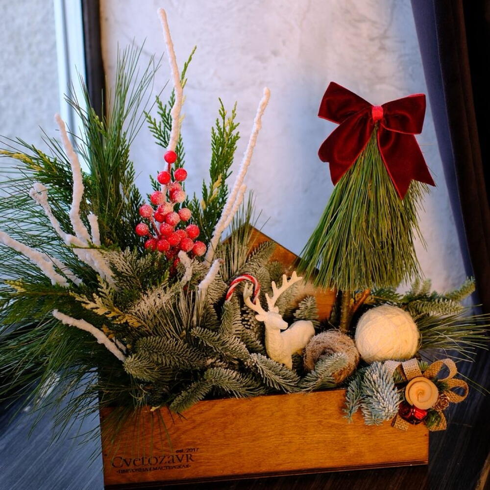 Новогодняя композиция в ящике 🎄