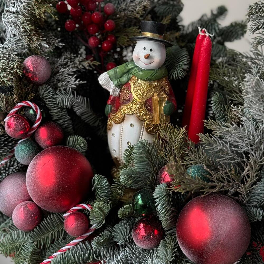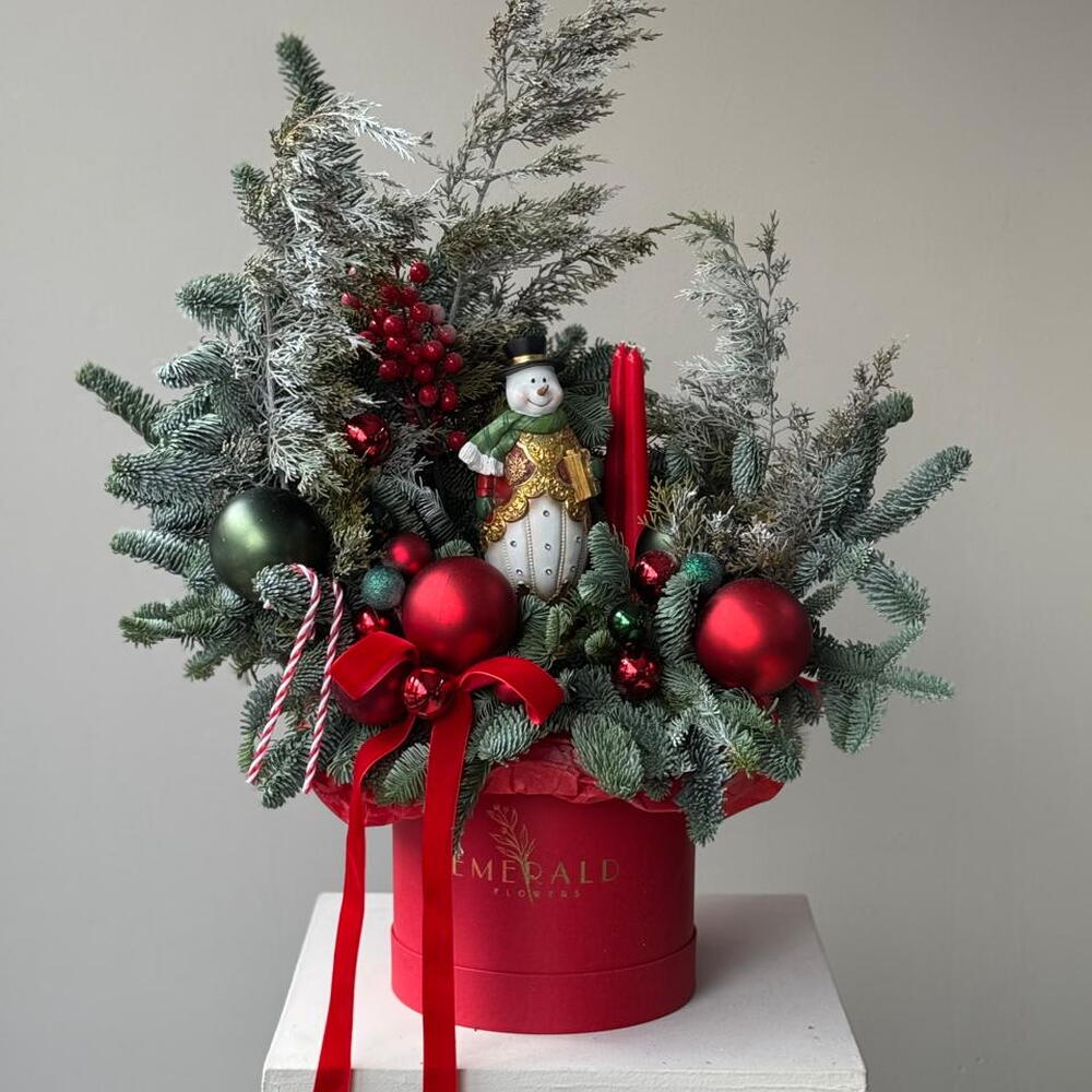 Ягоды декоративные - 1 шт. Нобилис - 3 шт. Елочные игрушки - 23 шт. Можжевельник - 2 шт. Коробка брендированная - 1 шт. декоративные леденцы - 2 шт. керамическая игрушка - 1 шт. лента бархат красный - 1 шт. свечи немецкие - 2 шт.