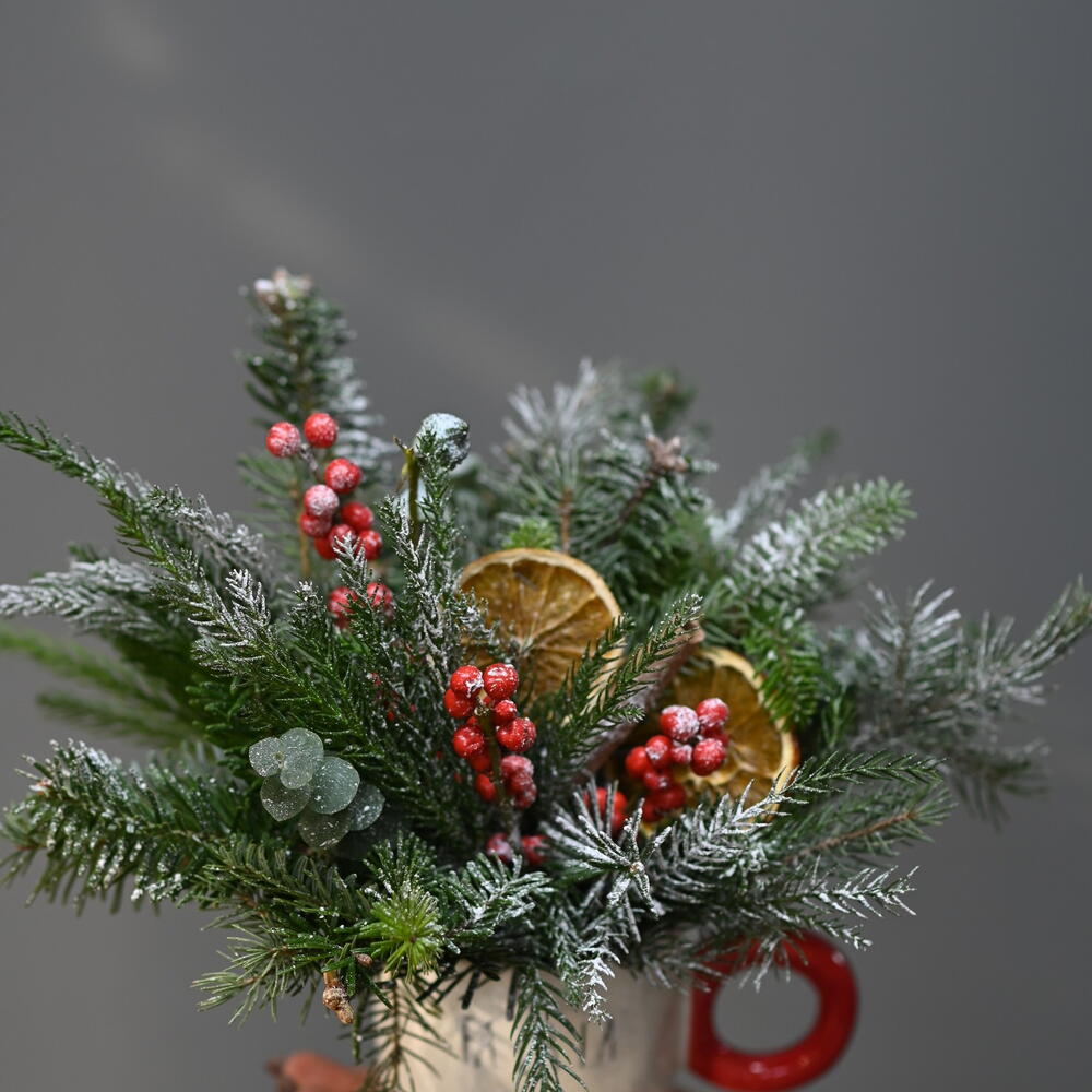 Илекс - 1 шт. Корица - 1 шт. Туя - 1 шт. Эвкалипт Микс - 1 шт. апельсиновые дольки - 2 шт. нобилиса - 1 шт.