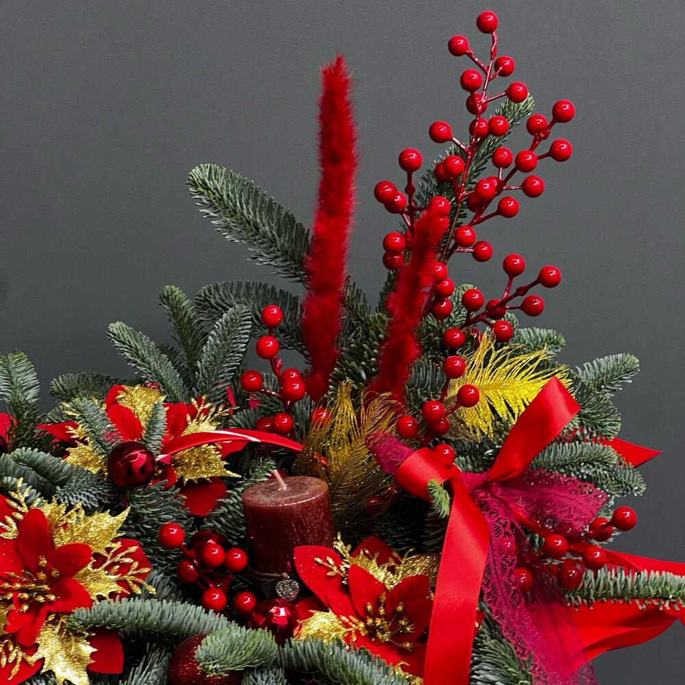 Новогодняя композиция из нобилиса и декора Украсит любой интерьер и подарит новогоднее настроение