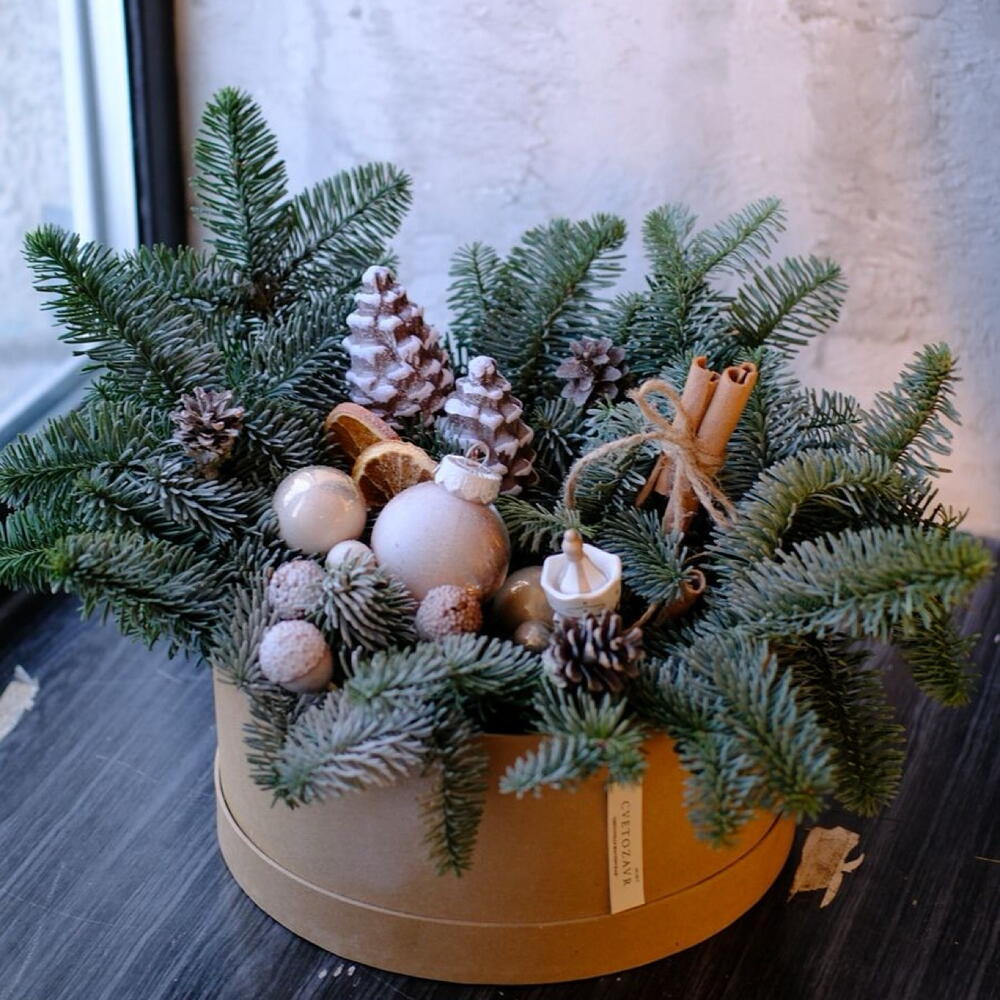Шишки - 3 шт. Новогодний декор - 1 шт. Нобилис - 1 шт. Новогодние шары - 3 шт. Корица палочки - 2 шт. шайба коробка - 1 шт.
