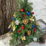 Новогодняя елочка ручной работы из голландского нобилиса, украшенная новогодним декором.