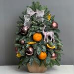 Кашпо - 1 шт. Оазис - 1 шт. Шары - 25 шт. Олень - 1 шт. бантик - 1 шт. мандарины - 7 шт. сухофрукт мандарин - 10 шт.