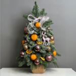 Кашпо - 1 шт. Оазис - 2 шт. Бант - 1 шт. Шары - 30 шт. Нобилис - 6 шт. Олень - 1 шт. мандарины - 10 шт. сухофрукт мандарин - 10 шт.