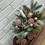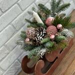 Сани деревянные Нобилис Свеча Игрушки Шишки Веточки декоративные Оазис Пихта