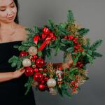 Шары - 20 шт. Игрушка - 1 шт. Нобилис - 3 шт. Ветка - 1 шт. ягодки - 4 шт. веночек - 1 шт.