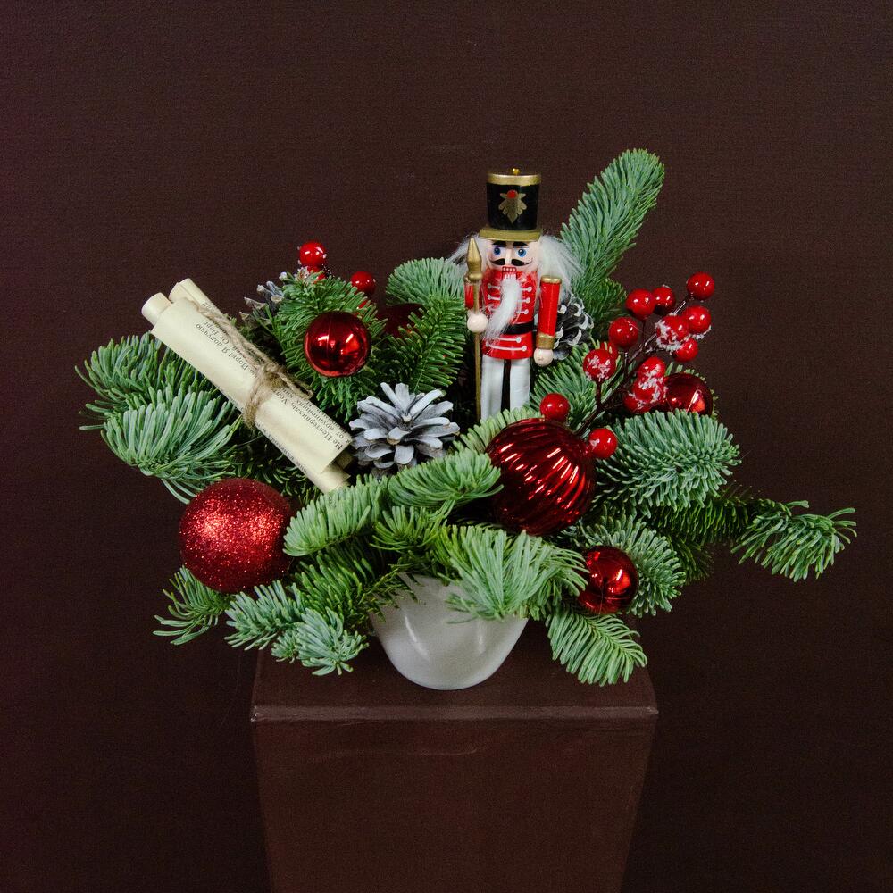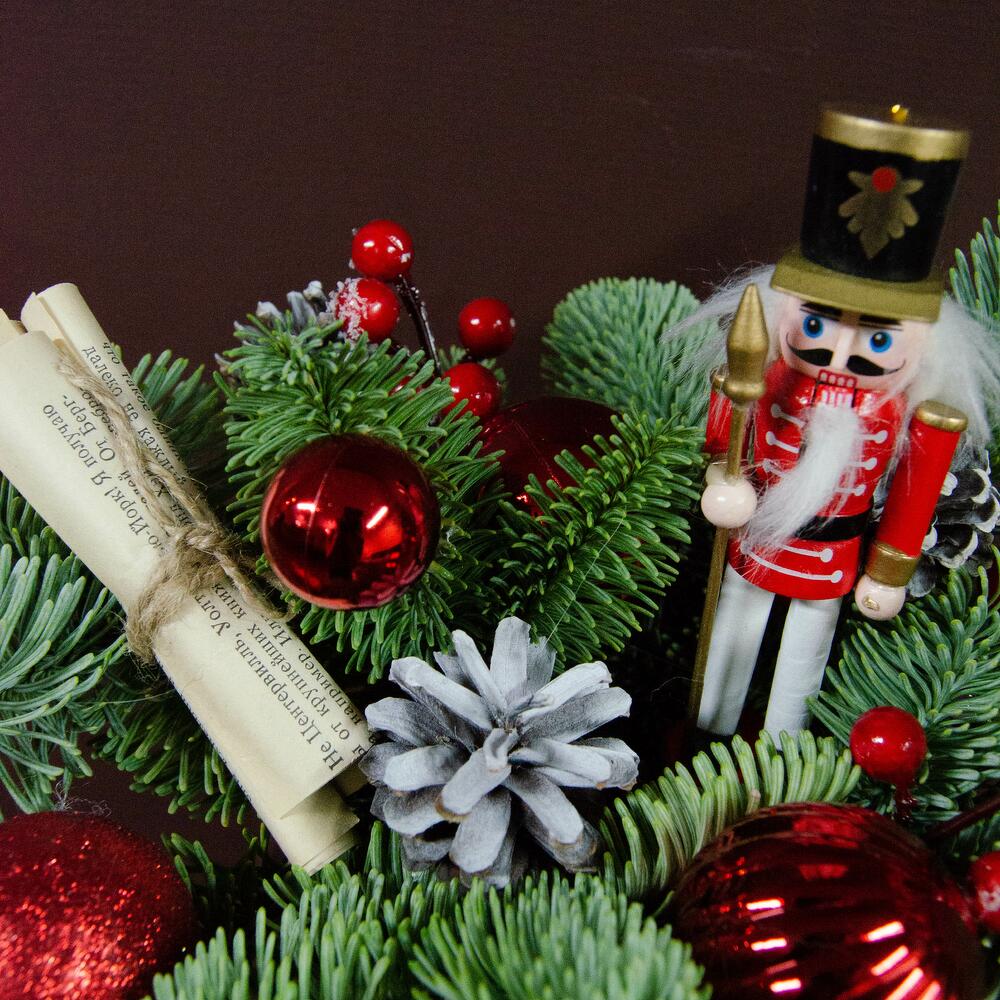 Ароматные хвойные композиции, собранные специально для вас мастерами-флористами. В зависимости от наличия игрушек, цвет и состав могут немного отличаться.