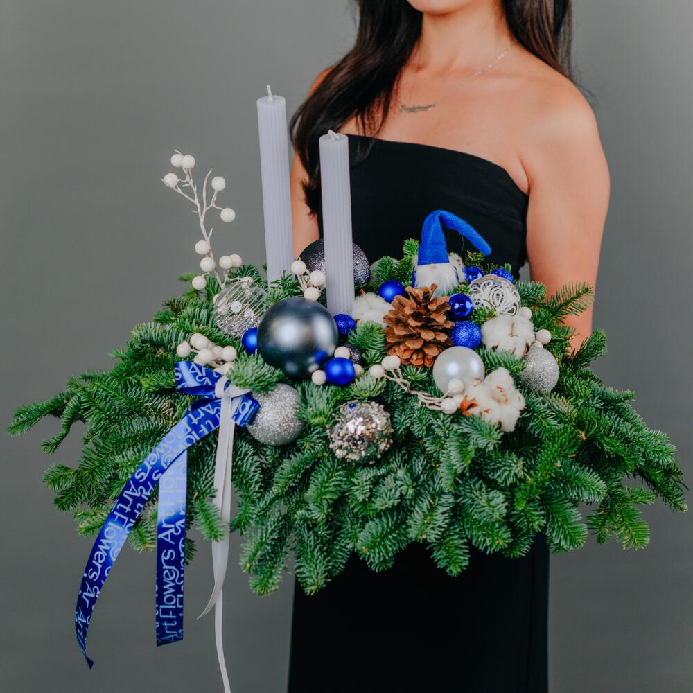Хлопок - 1 шт. Шишки - 1 шт. Шары - 20 шт. Нобилис - 3 шт. Ветка - 1 шт. свечи - 2 шт. гномик - 1 шт.