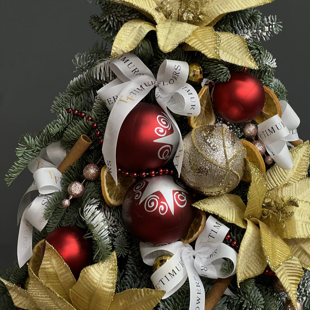 Кашпо - 1 шт. Нобилис - 4 шт. Новогодние игрушки - 9 шт. Декоративные цветы - 3 шт.