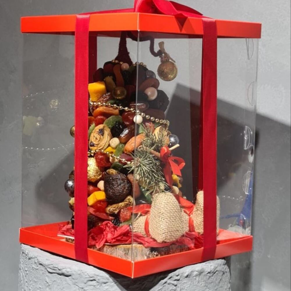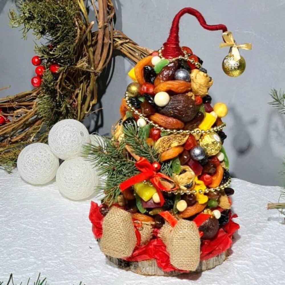 Ёлочка порадует любого получателя! Изобилие сухофруктов , орехов, сладостей. Украсит любой праздник!