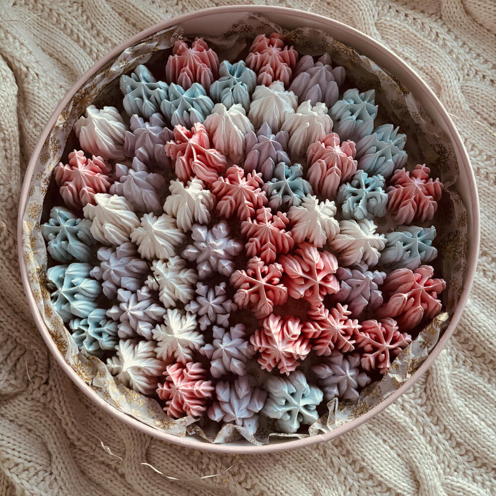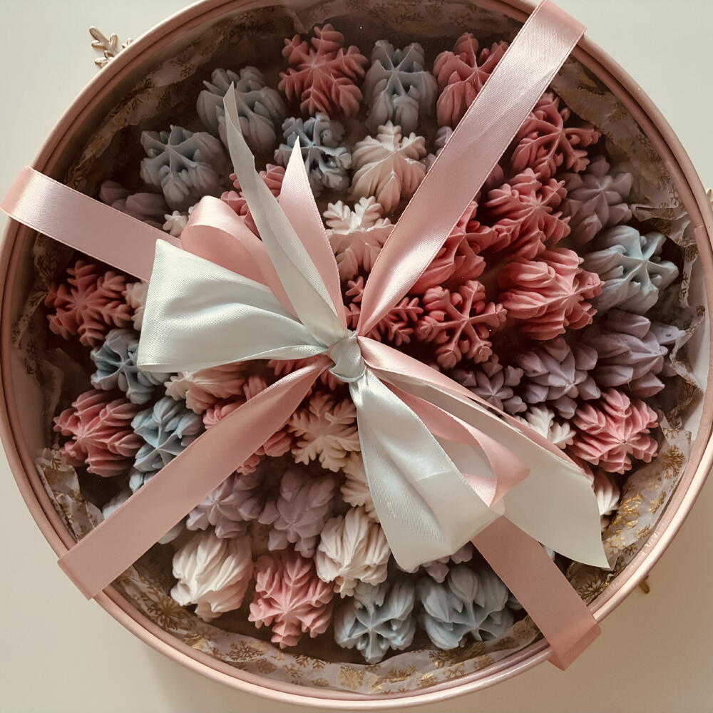 Зефирные снежинки — утончённая сладость зимы ❄️ Изысканные зефирные снежинки созданы для тех, кто ценит тонкий вкус и безупречную подачу. Нежная, шелковистая текстура буквально тает во рту, раскрывая мягкую, гармоничную сладость без лишней приторности. Каждая снежинка — результат аккуратной работы и внимания к деталям. Элегантная форма и безупречный внешний вид превращают зефир в эстетическое удовольствие, а стильная коробка подчёркивает премиальный характер продукта. Этот десерт идеально дополнит неспешное чаепитие, станет изящным комплиментом или роскошным подарком к зимним праздникам. Преимущества: премиальный зефир с воздушной текстурой деликатный, сбалансированный вкус изящная форма снежинок подарочная коробка с эффектной подачей идеален для подарка и особых моментов Зефирные снежинки — когда сладость становится искусством.