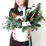 Эвкалипт - 1 шт. Свеча - 3 шт. Коробка - 1 шт. Пиафлор - 1 шт. Нобилис - 2 шт. пальмовые листья - 3 шт. хлопок (коробочка) - 8 шт.