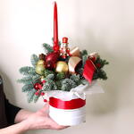 Лента - 1 шт. Свеча - 1 шт. Пиафлор - 1 шт. Нобилис - 2 шт. шляпая коробка - 1 шт.