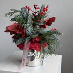 Зимняя стойкая композиция с двумя видами хвои и ягодами Илекса
