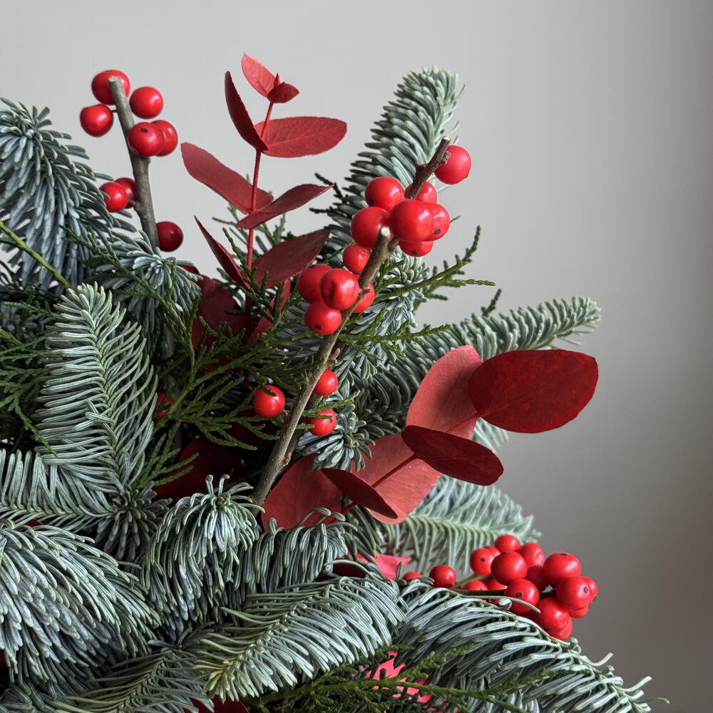 Зимняя стойкая композиция с двумя видами хвои и ягодами Илекса